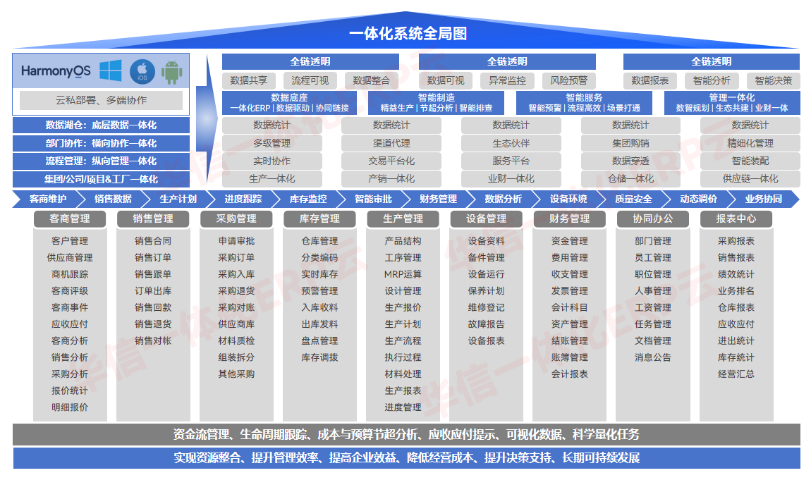 ✦ 针对物资资源管理、人力资源管理、财务资源管理、信息资源管理集成一体化的企业管理平台。