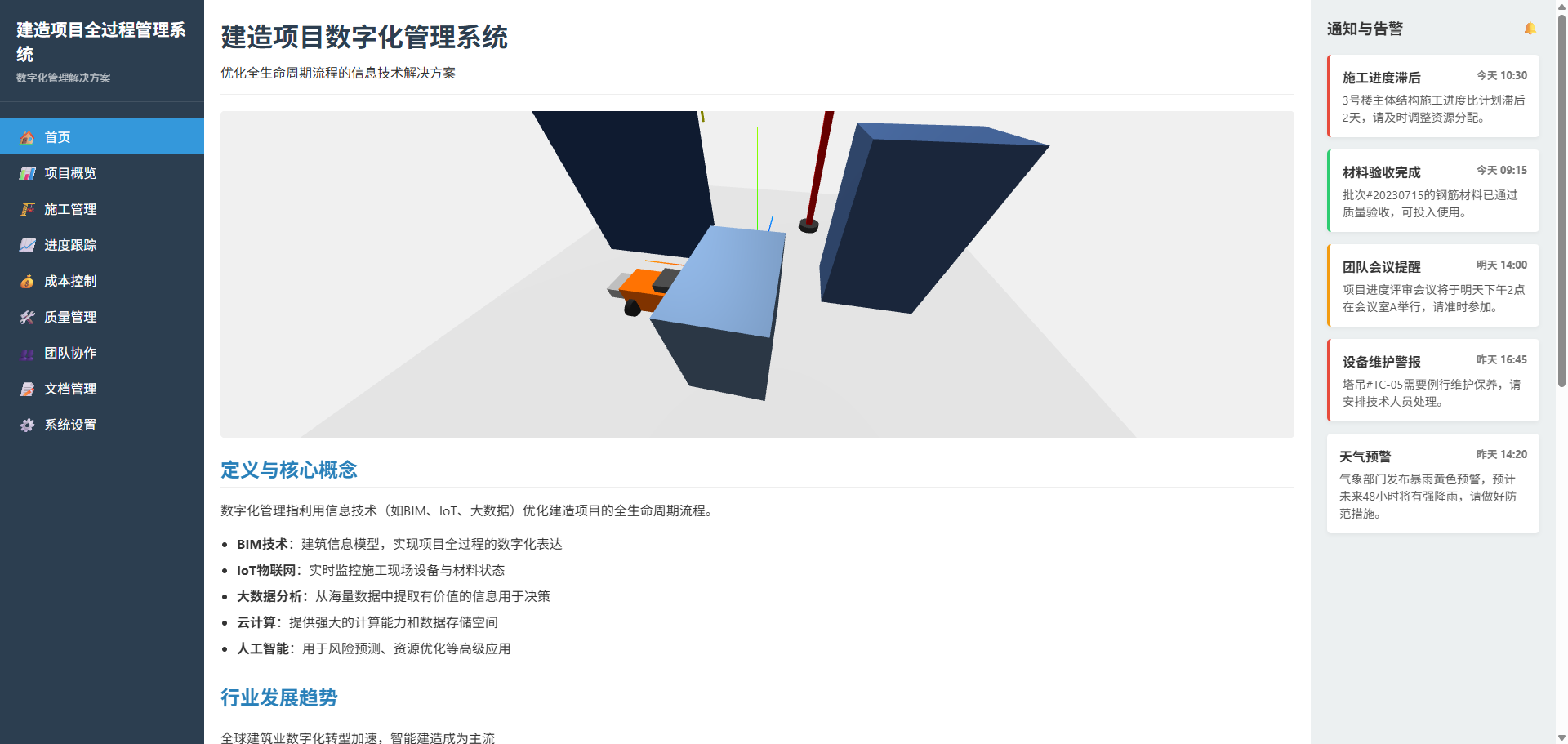 数字化管理指利用信息技术(如BIM、IoT、大数据)优化建造项目的全生命周期流程。