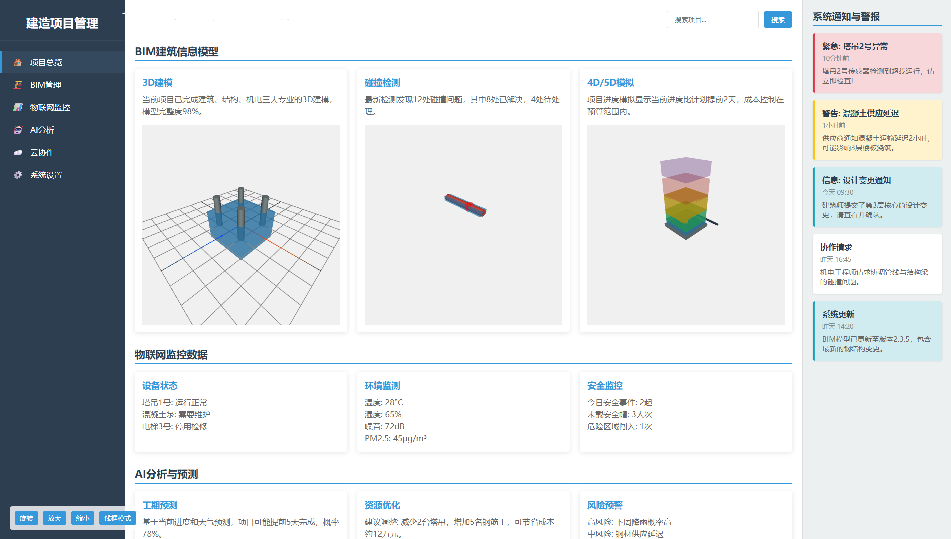 3D建模、碰撞检测、4D/5D模拟(时间与成本)。