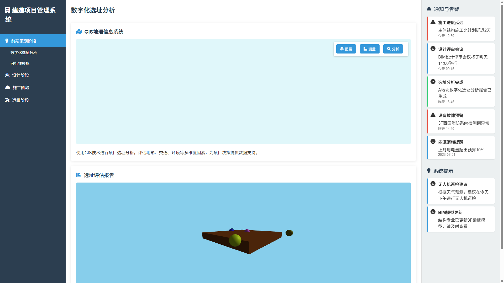 数字化选址分析、可行性模拟(如GIS技术)。