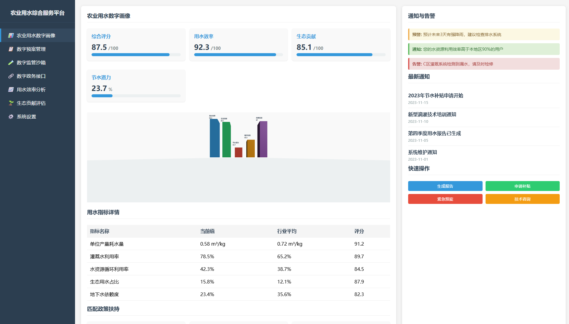 从用水效率、生态贡献等20+维度生成经营主体数字评分,挂钩政策扶持。