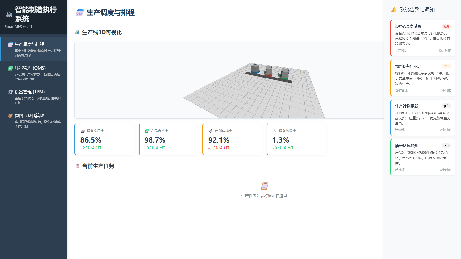 通过传感器和RFID实时采集设备、物料、人员数据。