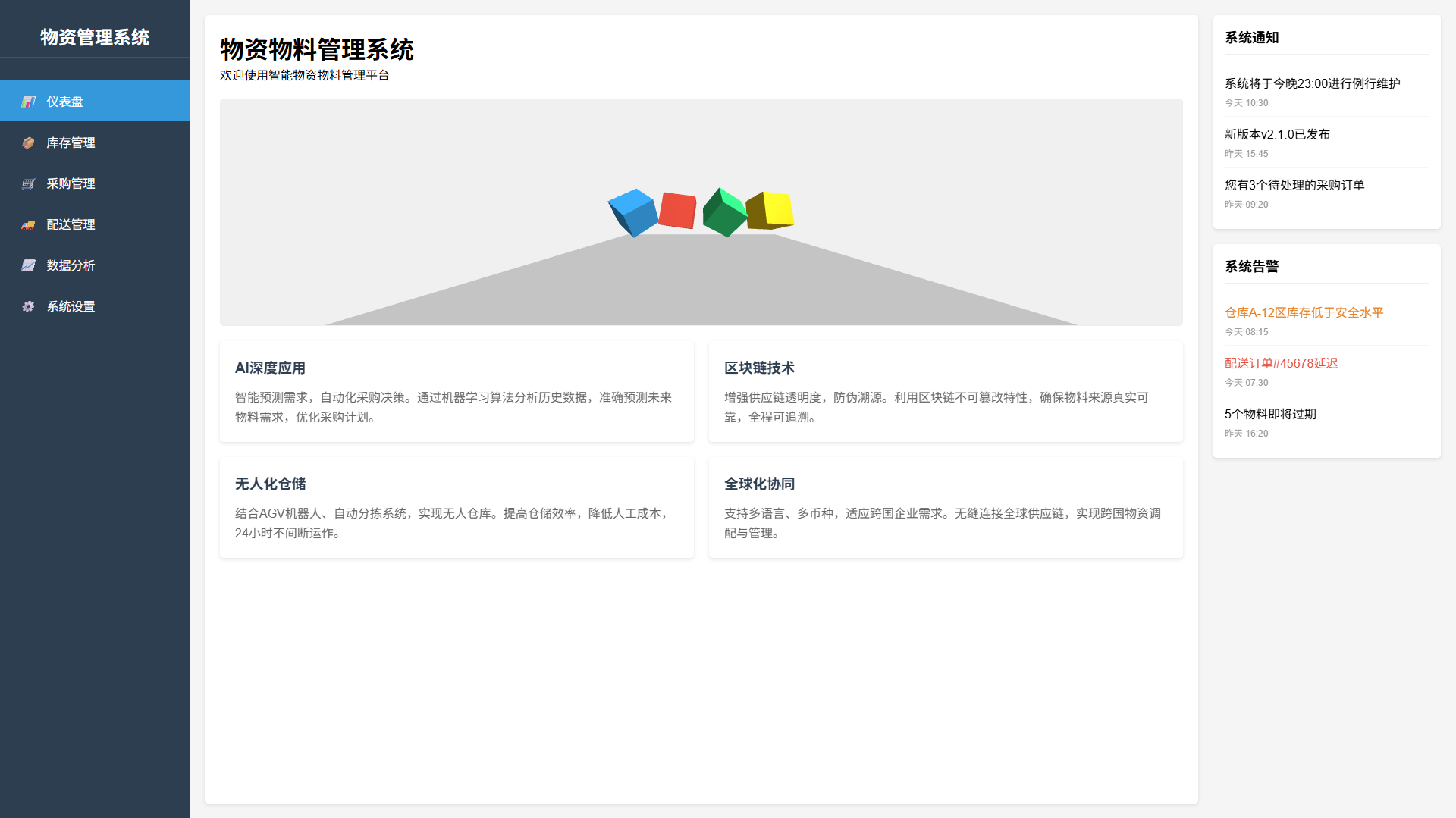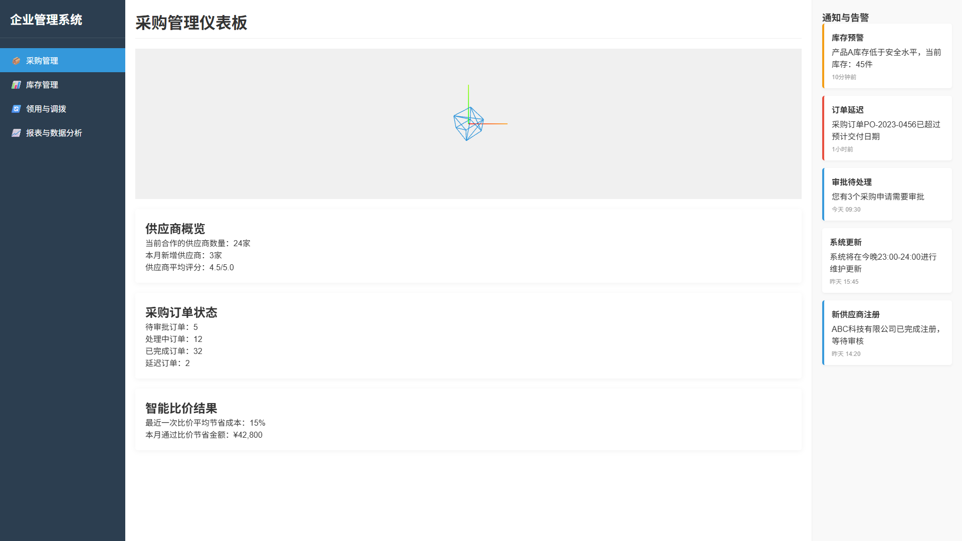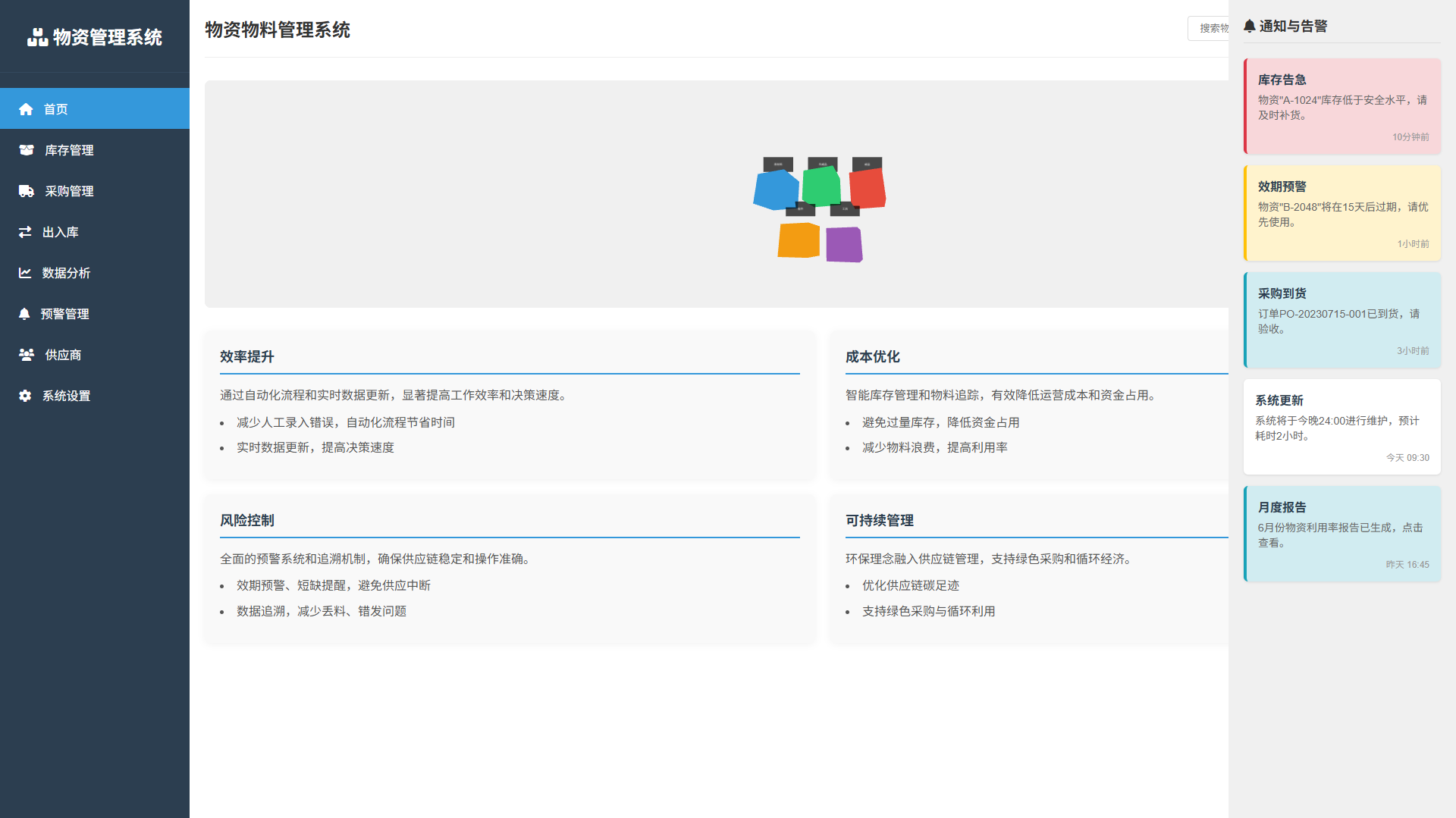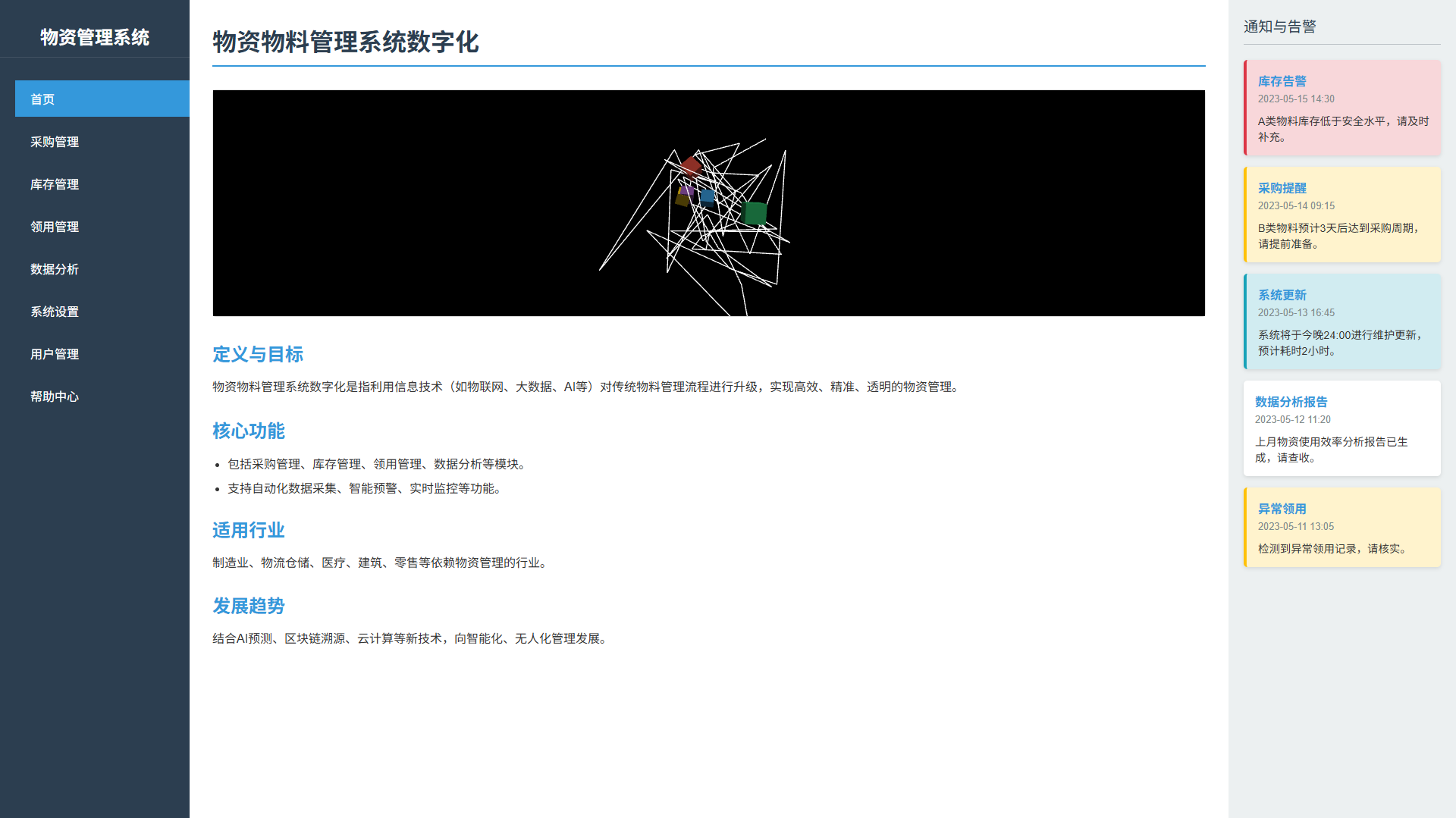 包括采购管理、库存管理、领用管理、数据分析等模块。支持自动化数据采集、智能预警、实时监控等功能。