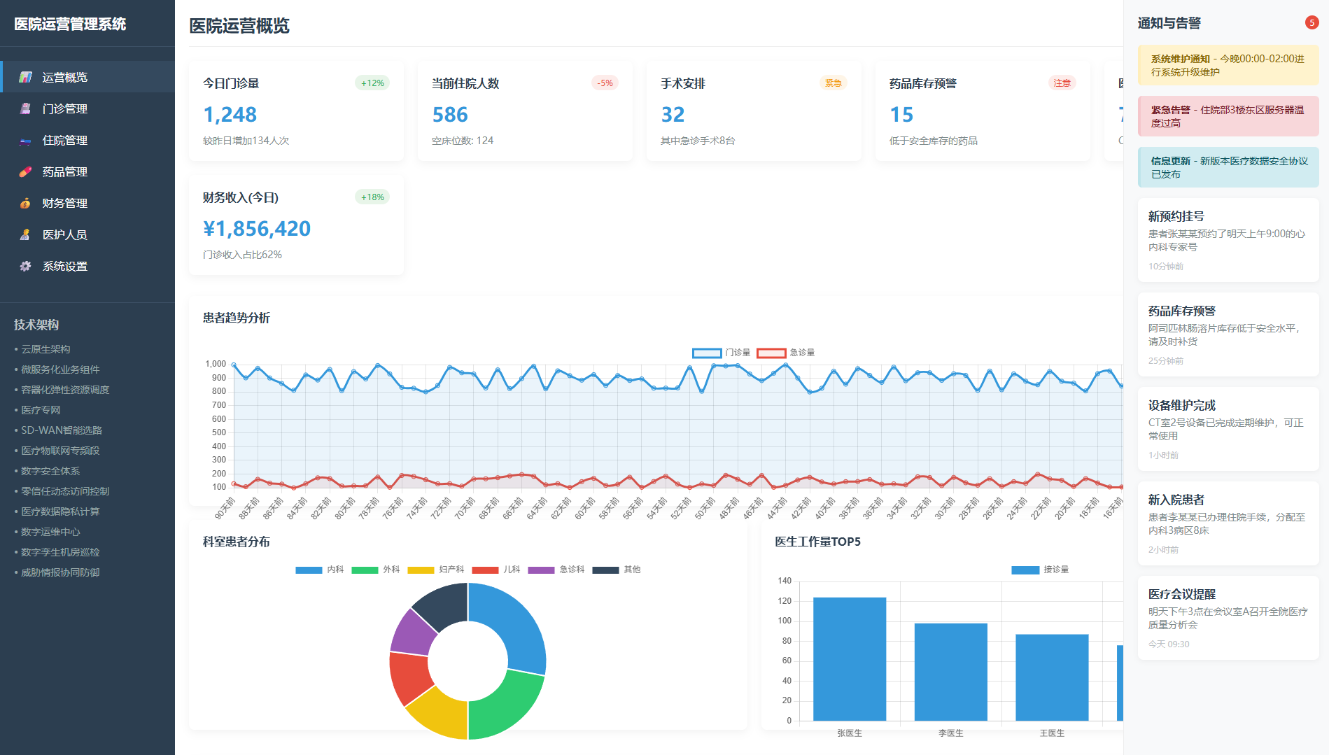 基于历史数据的门诊流量预测算法,突发公共卫生事件弹性预案库。