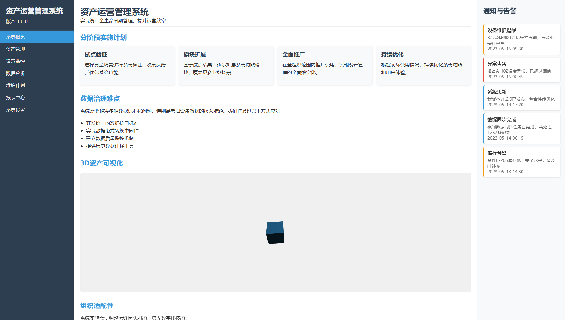 资产运营管理系统(AOMS)是通过数字化手段对资产全生命周期进行管理的平台。