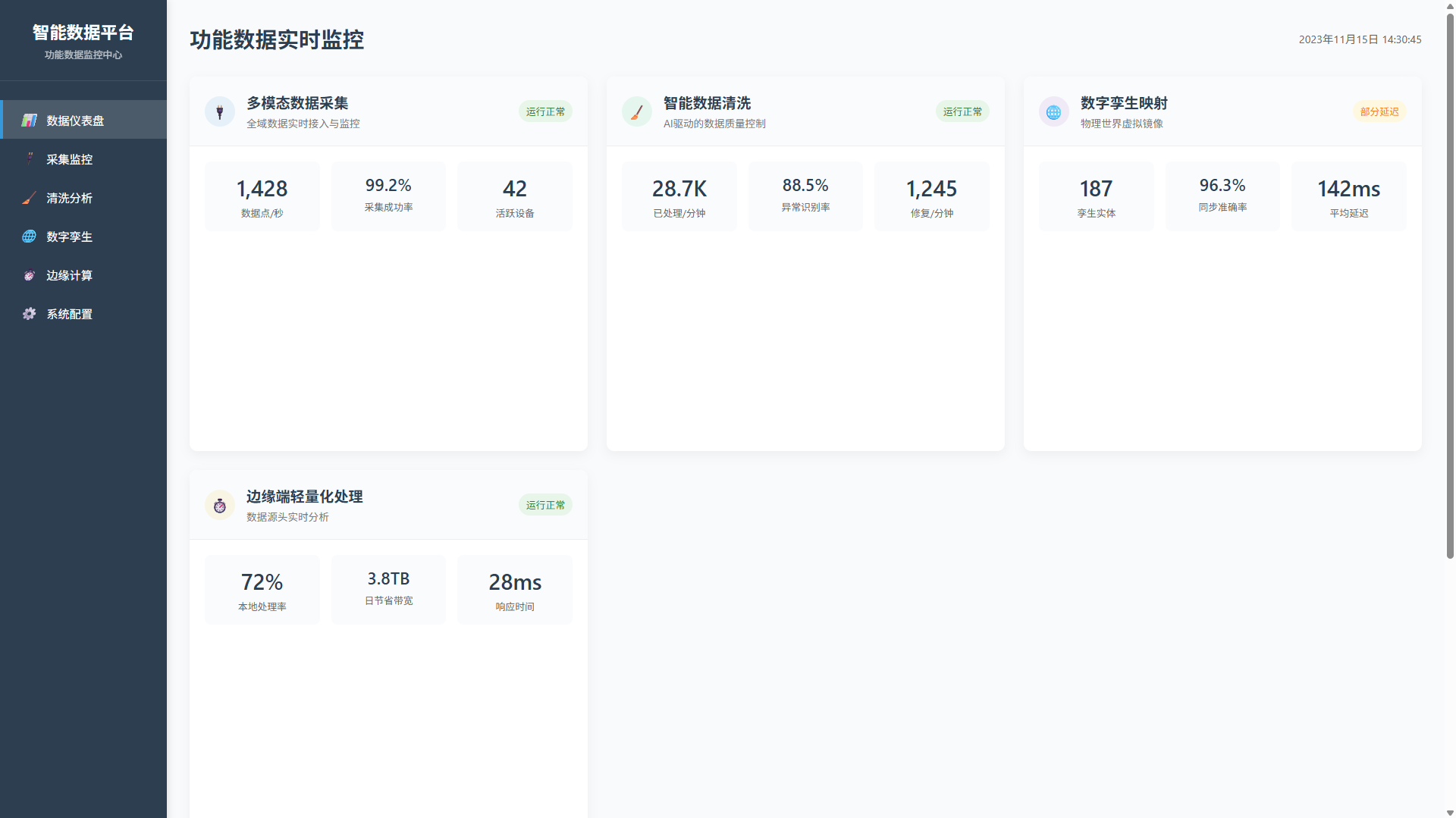 集成IoT设备、业务系统、外部API等,实现全域数据实时接入。